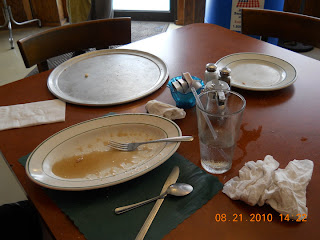 This is where my focus and mental toughness came into play. If they had been covered in peanut butter it wouldn't have even been an issue. But alas, there was no peanut butter. Only my wits and focus. I kept making deals with myself. I'd say, "Just get through this pancake and piece of toast and you can quit." Every time I got through it I made myself another deal and another and another. Then it was down to the last pancake. I cut into six pieces. As I put each piece in my mouth I took a small sip of water to help with chewing and swallowing. And then, after what seemed like an eternity, I swallowed the last piece.